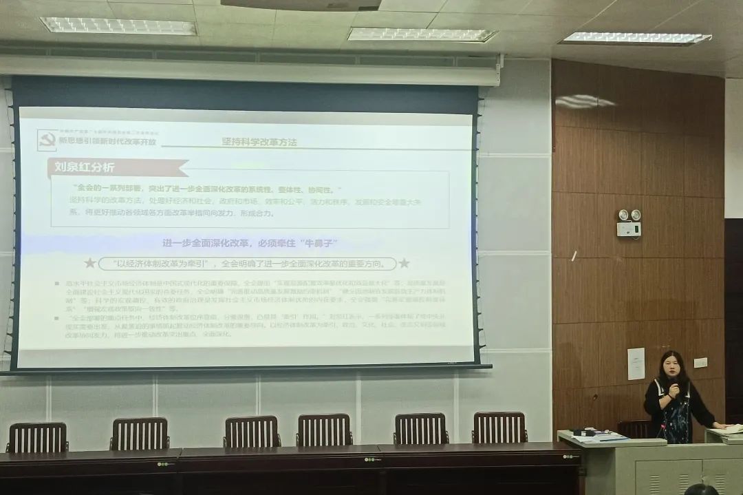 活动开始,孙琪然带领支部成员回顾了习近平总书记关于全面深化改革的重要讲话和指示精神,详细阐述了新时代全面深化改革的重大意义、目标任务和基本要求。孙琪然指出这些重要思想和会议精神对于我们理解国家发展战略、明确自身责任担当具有深远的指导作用。