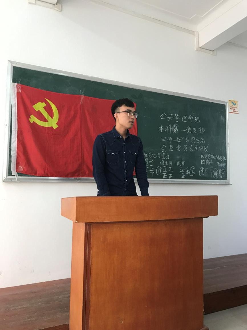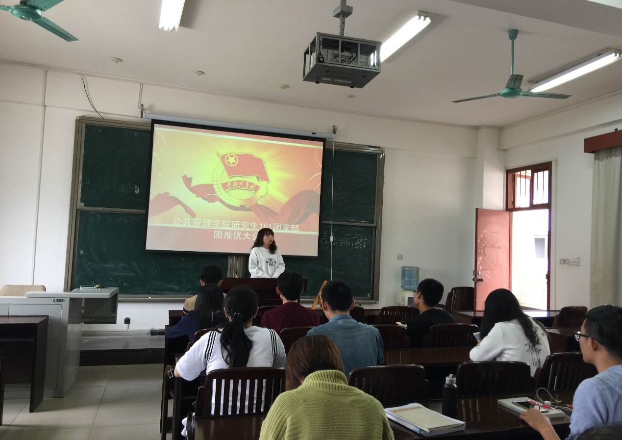 | (研究生161班支部邓艳萍同志在支部推优大会进行参评发言) |