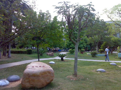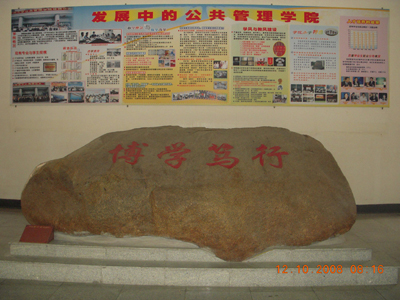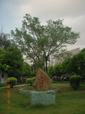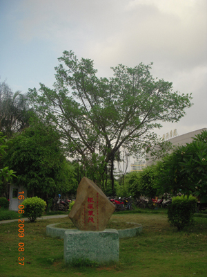 哲学78级罗殿龙率崇左校友捐赠花岗岩石立于麻豆tv 大门东侧